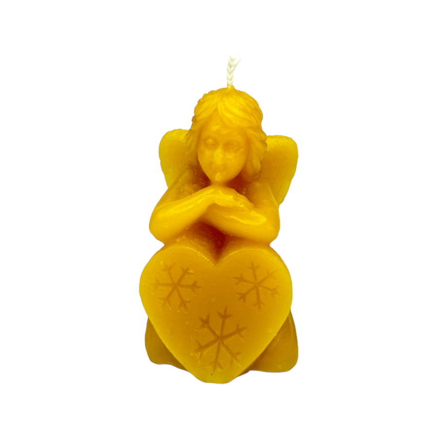 Candela profumata a forma di Angelo con fiocco di neve sul cuore.