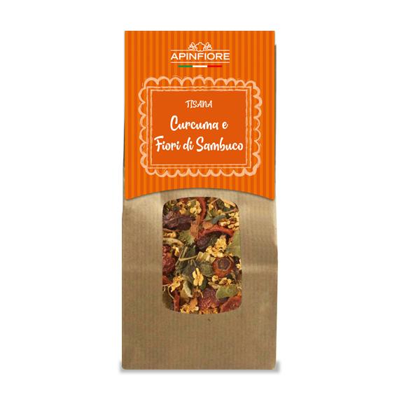 TISANA DIURETICA E DEPURATIVA con Curcuma Ortica e Fiori di SambucoUna tisana dal gusto fruttato e dolce, per momenti di naturale benessere. La presenza di Curcuma, Fiori di Sambuco e Ortica rendono questa tisana antinfiammatoria aiutando la disintossicazione di reni e fegato.
