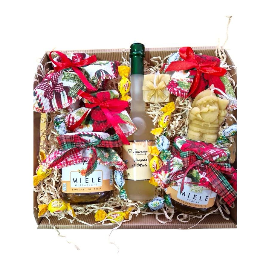 Cesto natalizio medio con prodotti al miele composto da: