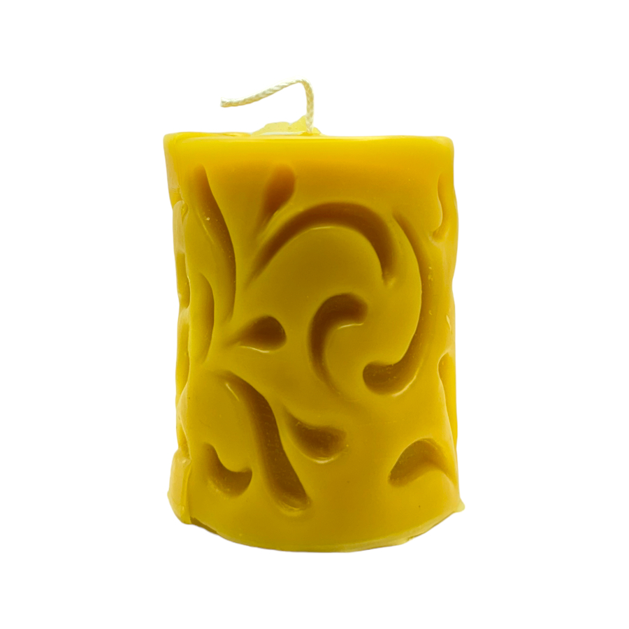 Candela profumata cilindrica con incisioni artigianale