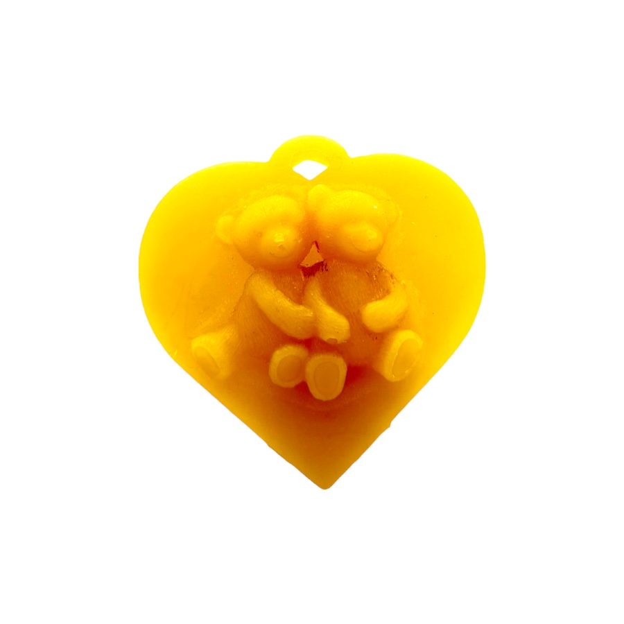 Candela profumata al miele a forma di cuore con orsetto.